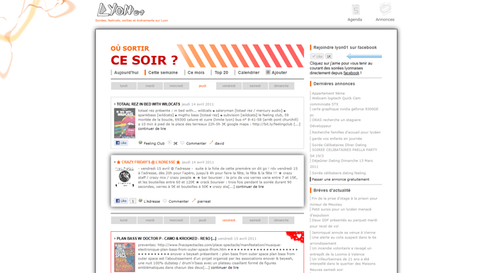 Le site montre maintenant en priorité les soirées lyonnaises et passe en second plan tout le reste.